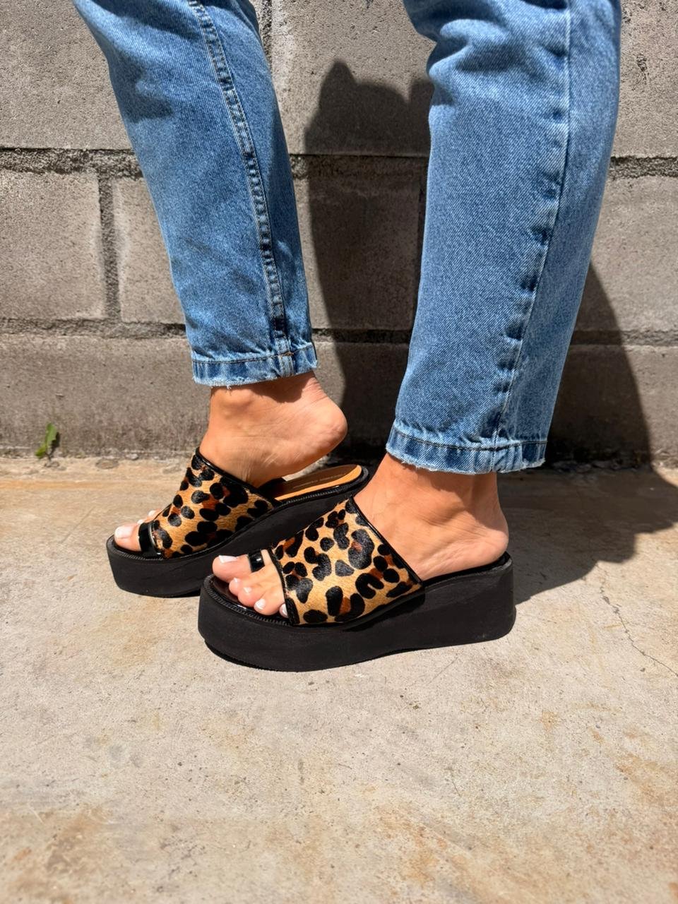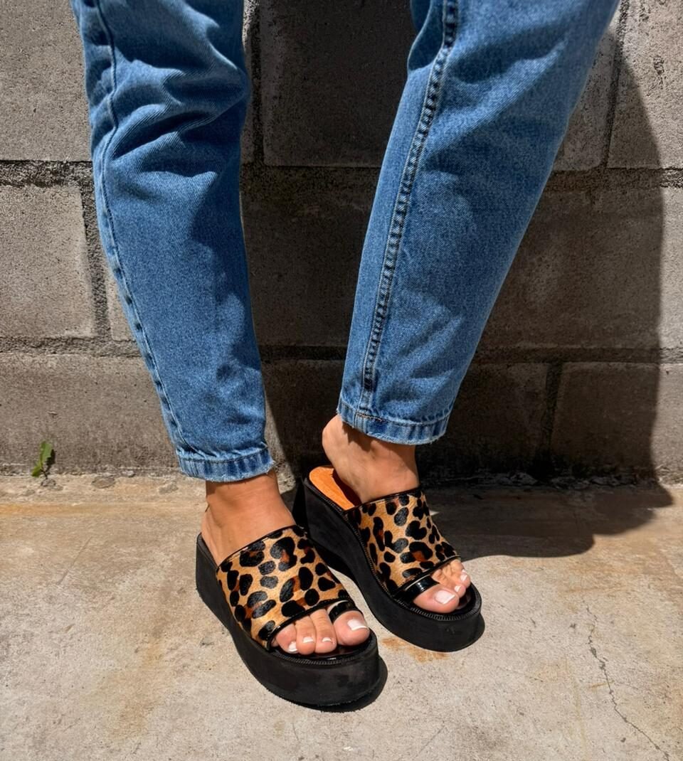 Sandalia de cuero animal print, con un toque de originalidad, perfecto para cualquier outfit.