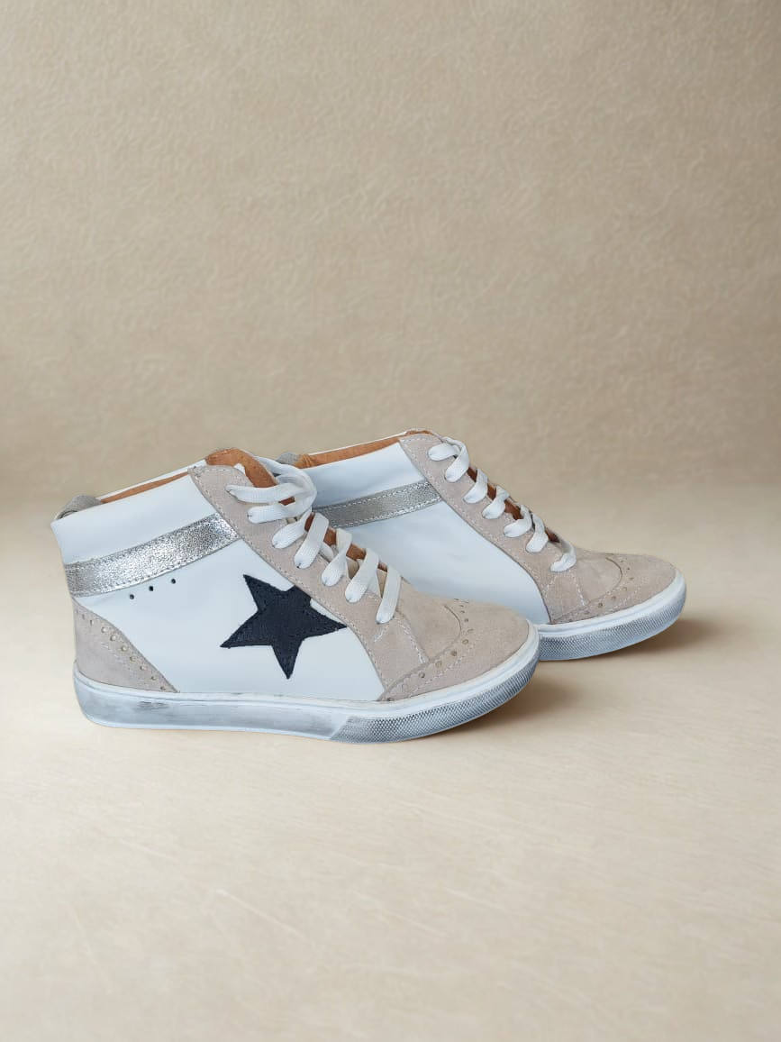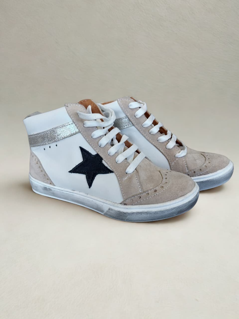 Zapatilla Caña Blanca Beige/Estrella Negra