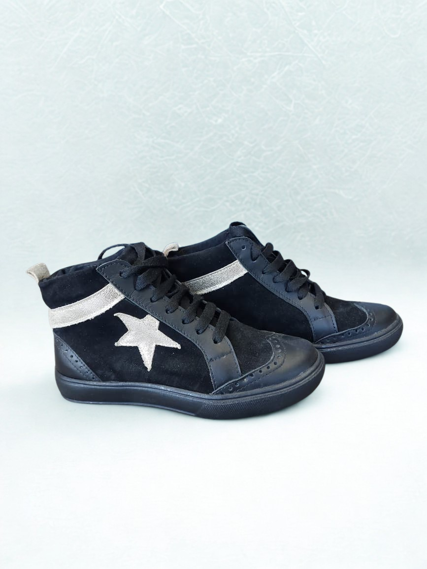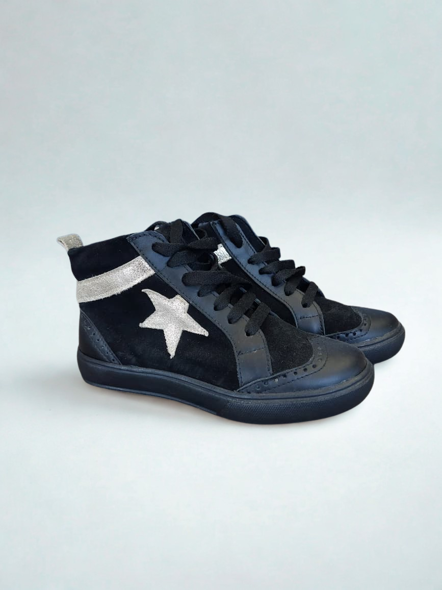 Sé el primero en valorar “Zapatilla Negra Caña Estrella Dorada”